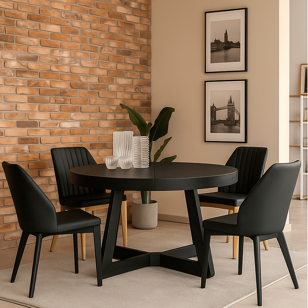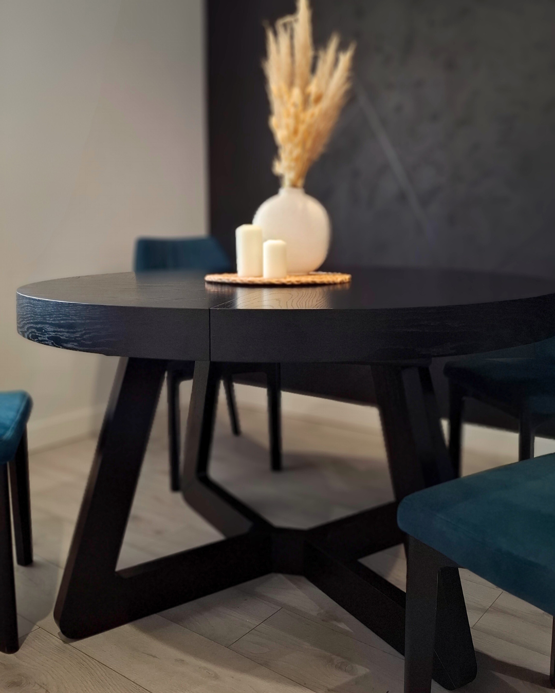 Stół Olaf okrągły drewniany  rozkładany czarny 130 cm - 230 cm T40