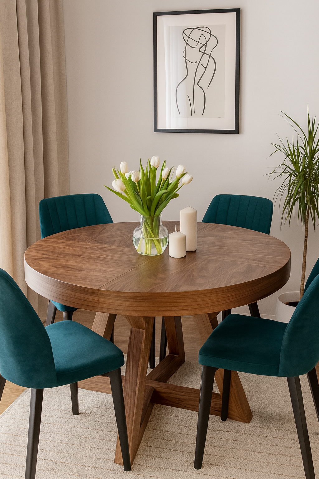Stół Olaf okrągły drewniany rozkładany Orzech Amerykański 130 - 230 cm T40