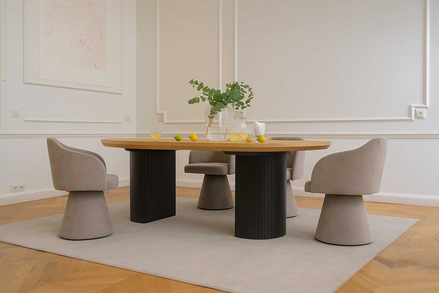 STÓŁ NA RYFLOWANYCH NOGACH 110 cm x 200 - 300 cm T72