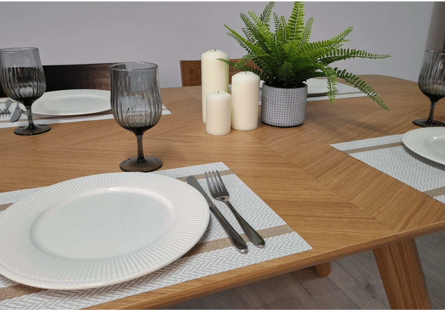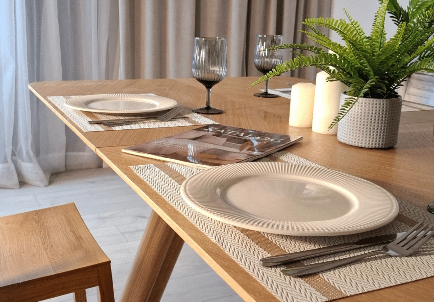 Dzięki ogromnej powierzchni po rozłożeniu jest idealny na święta, rodzinne obiady, przyjęcia i spotkania z większą liczbą gości.