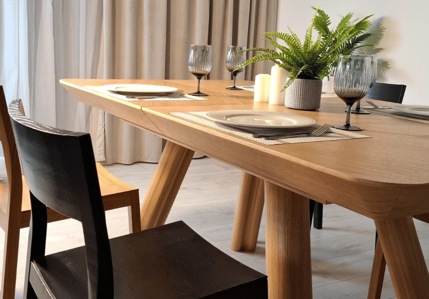 Nogi ze sklejki dębowej – stabilne, nowoczesne, nadające stołowi lekkości wizualnej.