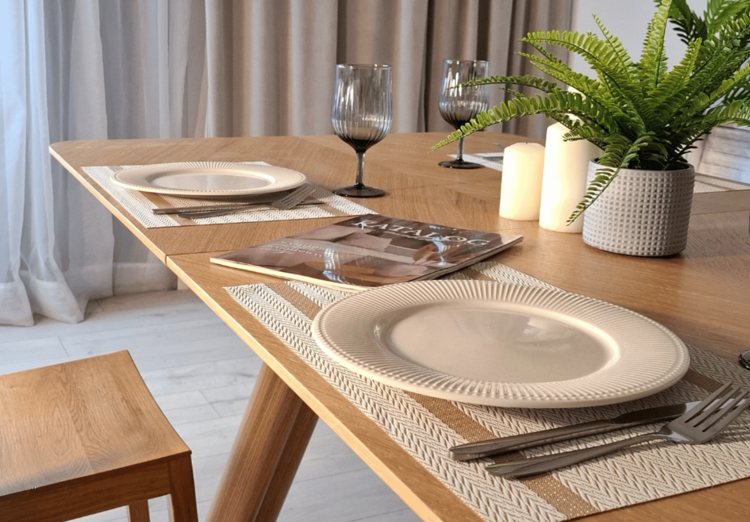Aż cztery wkładki (chowane pod blat) – pozwalają uzyskać maksymalną długość 380 cm.