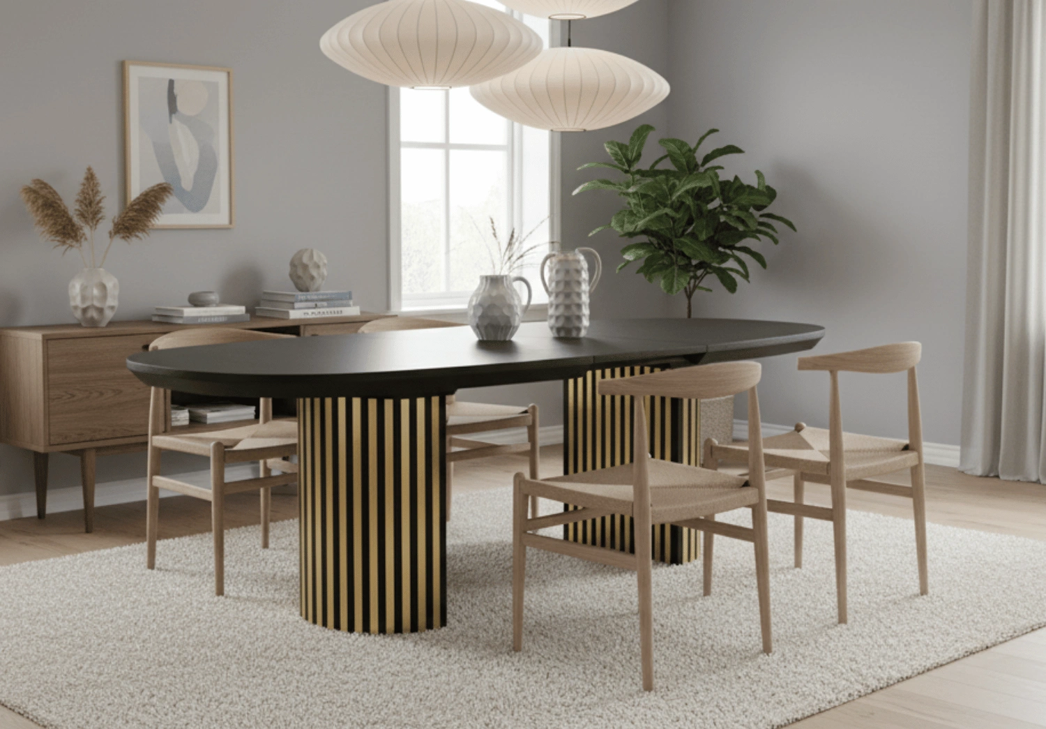 Stół T72 rozkładany na ryflowanej nodze – elegancja dębu i pełna funkcjonalność