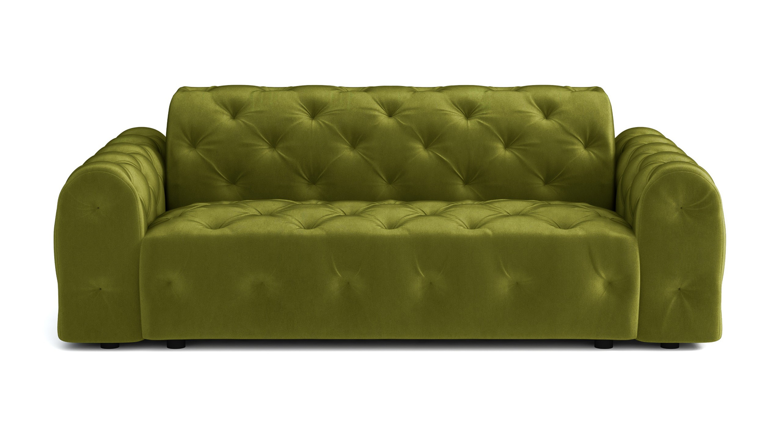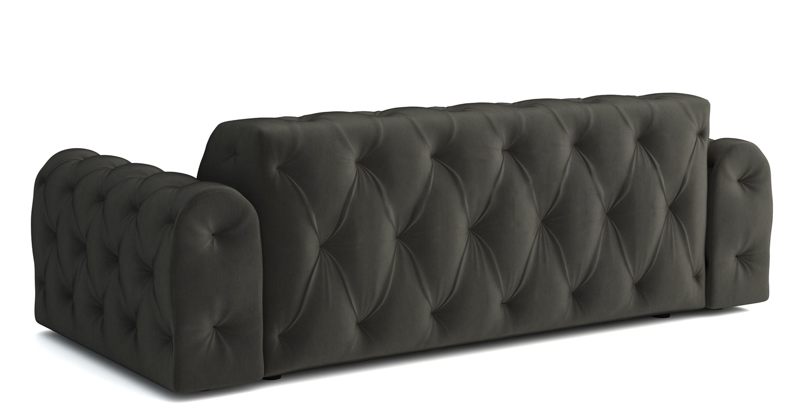 Wzór pikowania składa się z głęboko osadzonych guzików, które tworzą eleganckie, romboidalne zagłębienia na powierzchni tapicerki.