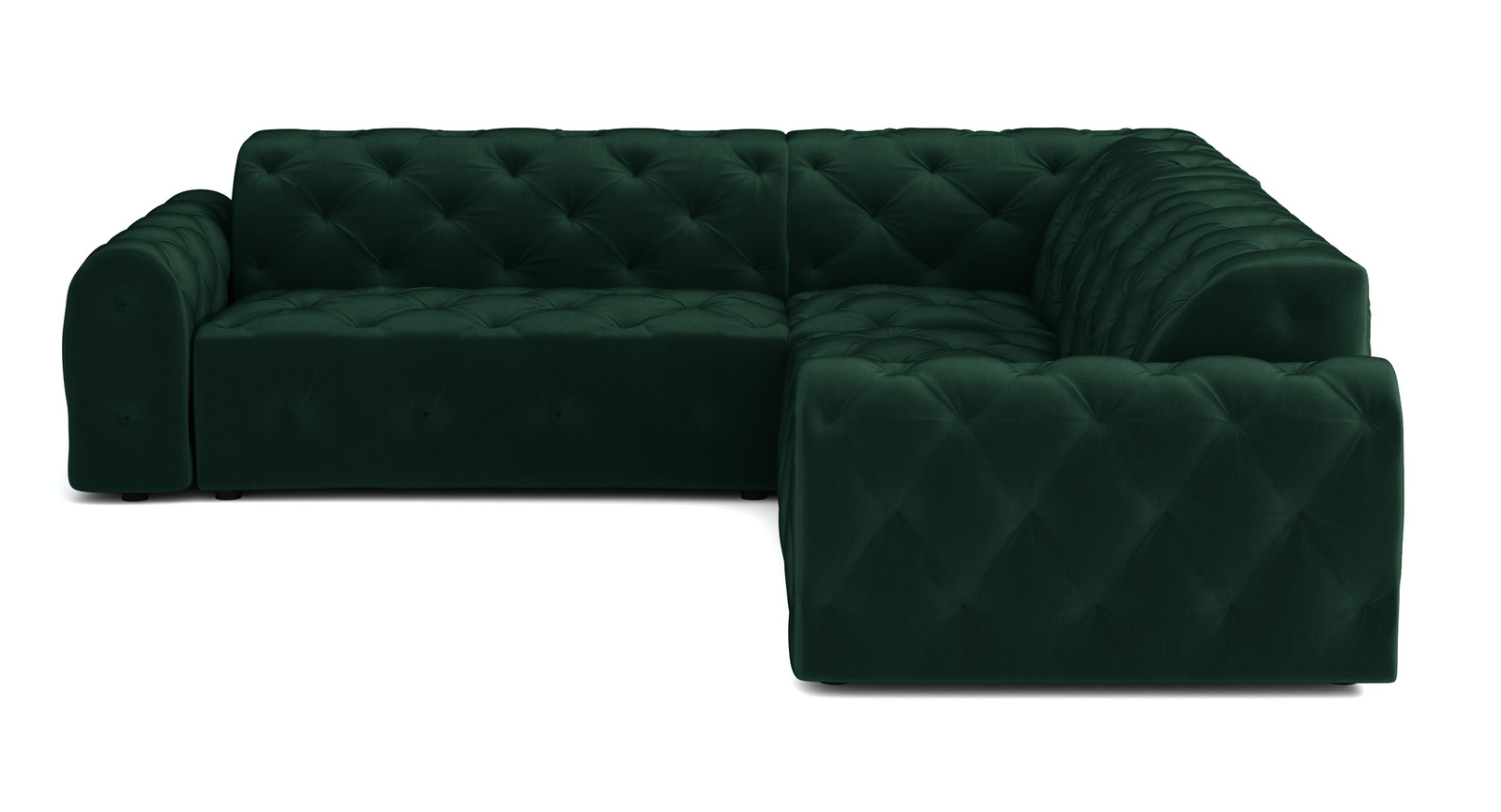 Wzór pikowania składa się z głęboko osadzonych guzików, które tworzą eleganckie, romboidalne zagłębienia na powierzchni tapicerki.