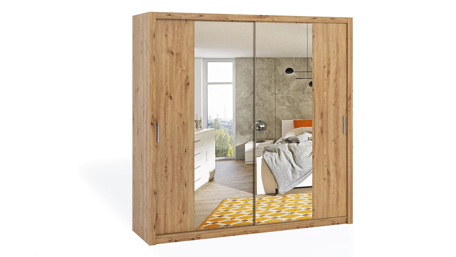 Nowoczesny design z naturalnym wykończeniem – idealny do sypialni, przedpokoju lub garderoby.