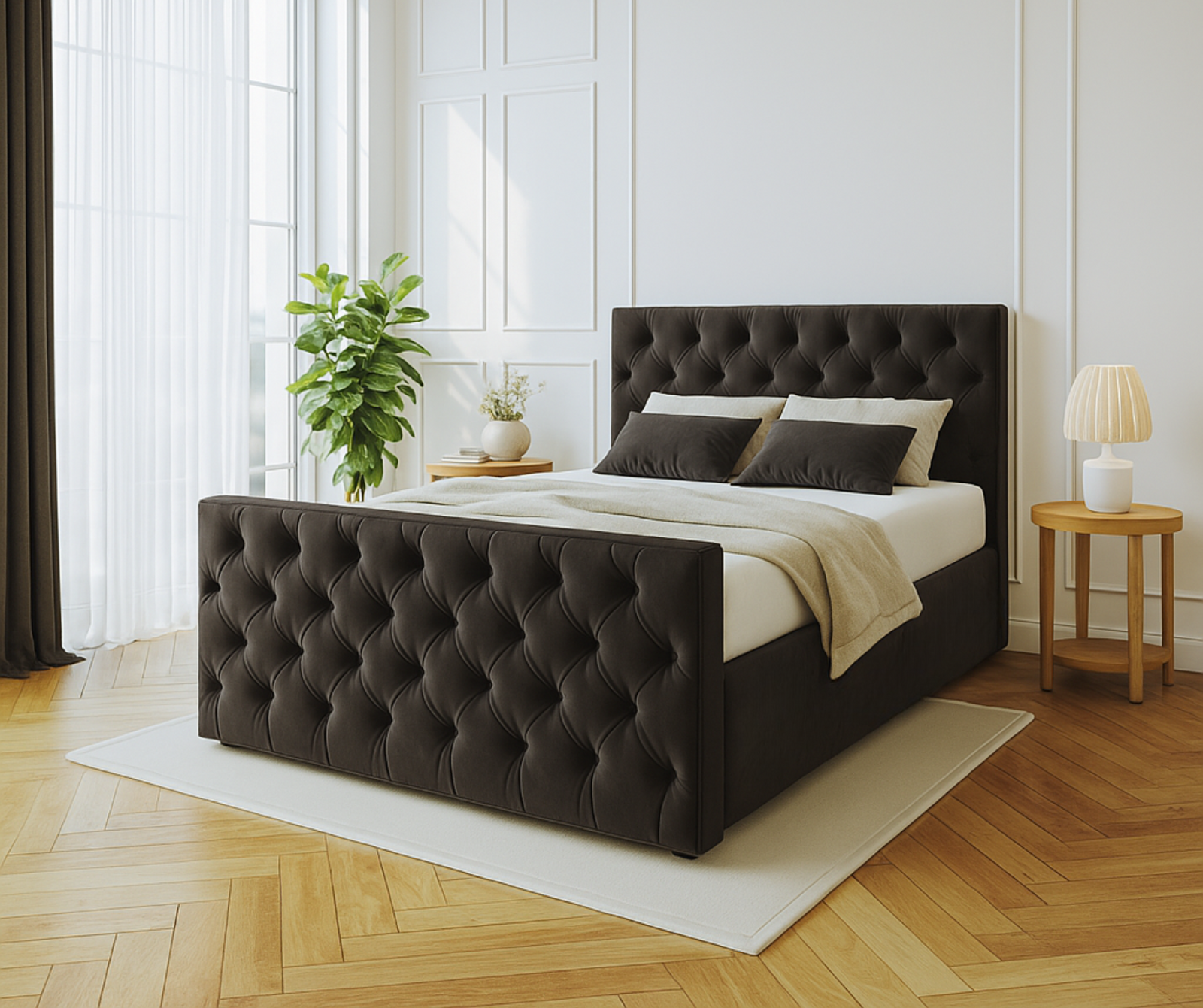Venus łóżko tapicerowane z pikowanym zagłowiem, materacem bonell  i dwoma pojemnikami