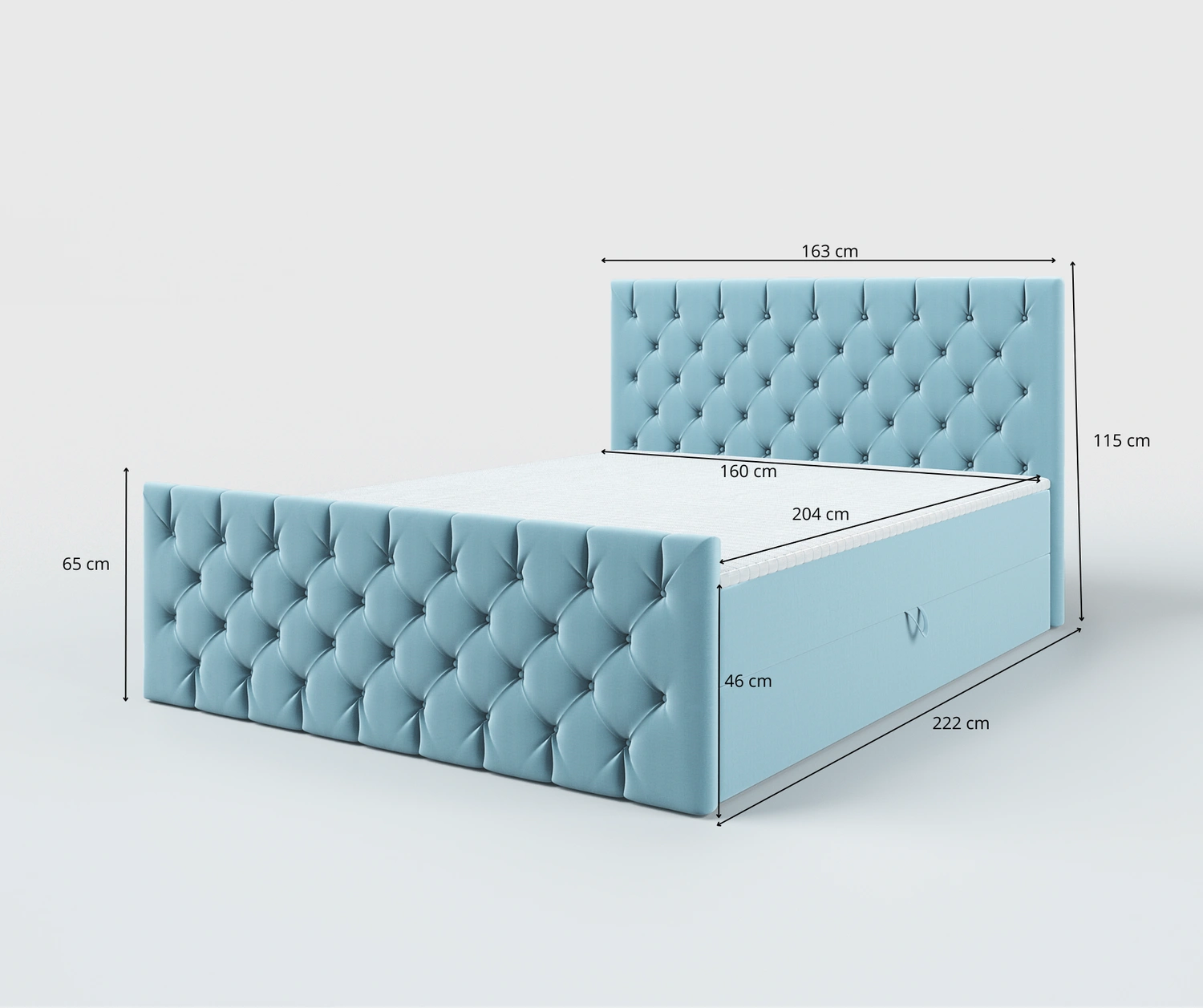 Venus łóżko tapicerowane 160x200 cm z pikowanym zagłowiem, materacem bonell i dwoma pojemnikami