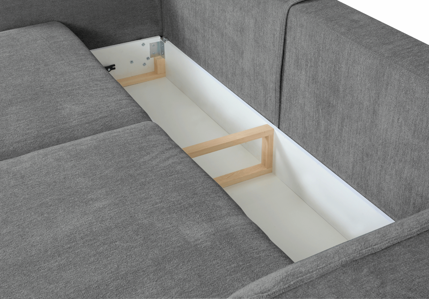Wyposażona w funkcję spania, pojemnik na pościel oraz komfortowe poduchy, stanie się centralnym punktem Twojego salonu.