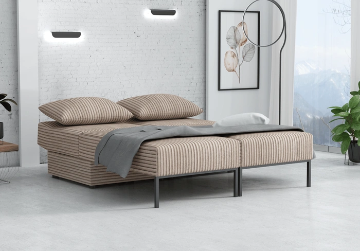 Dzięki funkcji spania, pojemnikowi na pościel i regulowanym zagłówkom TOMI zapewnia wygodę na najwyższym poziomie – zarówno w dzień, jak i w nocy. To mebel, który stanie się centrum Twojego salonu i ulubionym miejscem codziennego relaksu.