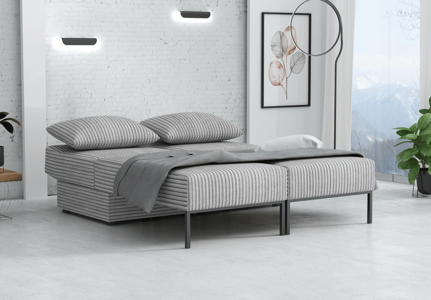 Dzięki funkcji spania, pojemnikowi na pościel i regulowanym zagłówkom TOMI zapewnia wygodę na najwyższym poziomie – zarówno w dzień, jak i w nocy. To mebel, który stanie się centrum Twojego salonu i ulubionym miejscem codziennego relaksu.