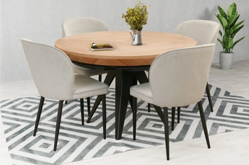 Stół Mietek okrągły rozkładany na metalowej podstawie 120 - 220 cm T49