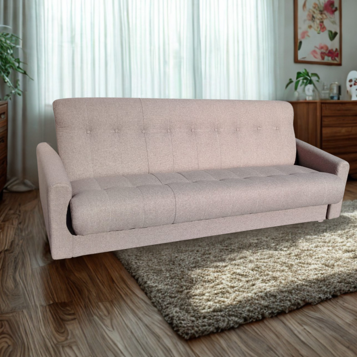 MACIEK to tapicerowana, pikowana sofa z prostymi boczkami, która łączy w sobie klasyczny styl i codzienną funkcjonalność. Jej solidna konstrukcja oparta na drewnie oraz zastosowanie pianki poliuretanowej i sprężyn falistych gwarantują wygodę, trwałość i komfort na lata.