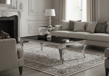 Stolik kawowy glamour – czarny blat, chromowana podstawa 130x70x45 cm