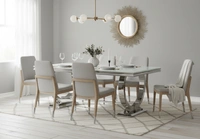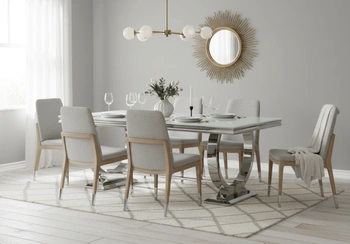 Stół w stylu loftowym łączy surową prostotę z wyrafinowaną geometrią. Najczęściej posiada blat z litego dębu lub jesionu wykończony olejem, który eksponuje naturalne sęki, oraz stalową podstawę o malowaniu proszkowym w kolorze czerni matowej. W odróżnieniu od ciężkiego stylu industrialnego loft stawia na wizualną lekkość: nogi przybierają formę cienkich profili lub tzw. ram „U” i „X”, dzięki czemu stół nie przytłacza przestrzeni, nawet gdy blat ma 200 cm. Prostokąt sprawdza się w wąskich pomieszczeniach, natomiast okrąg dodaje dynamiki w otwartym aneksie. Nowoczesne loftowe modele bywają też wyposażone w ukryte inserty do rozkładania lub kanały na okablowanie, co czyni je bardziej funkcjonalnymi na co dzień. To właśnie subtelne wyważenie surowości i ergonomii odróżnia loft od czystego industrialu.